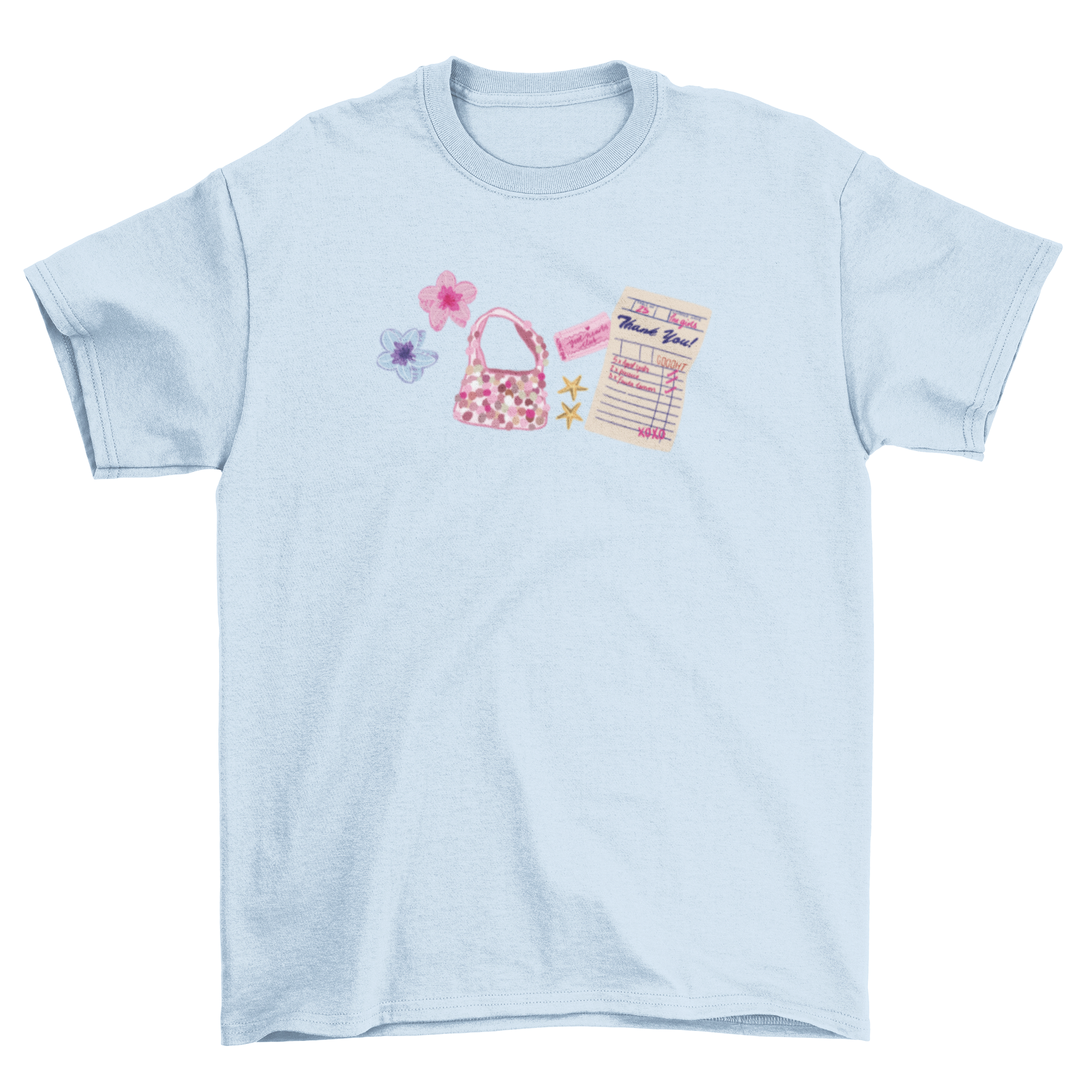 Introducing our Essentials Baby Tee - the perfect holiday addition to your wardrobe! Featuring a playful design with sequins, starfish earrings, and flower claw clips, this tshirt will add a fun touch to any outfit. Bring on the sun and surf, this tee has got you covered (and accessorized) for all your beachy adventures!